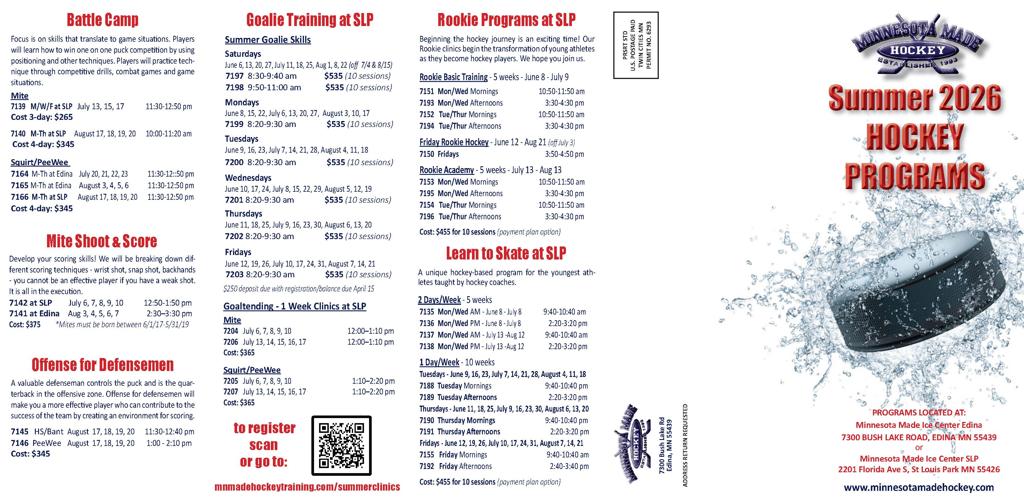 Minnesota Made Hockey is dedicated to the training of goalies of all ages. Goaltending coaches work with the goalies in our Winter Choice Leagues and also our AAA teams in small groups and 1on1 sessions in addition to the clinics and training offered.